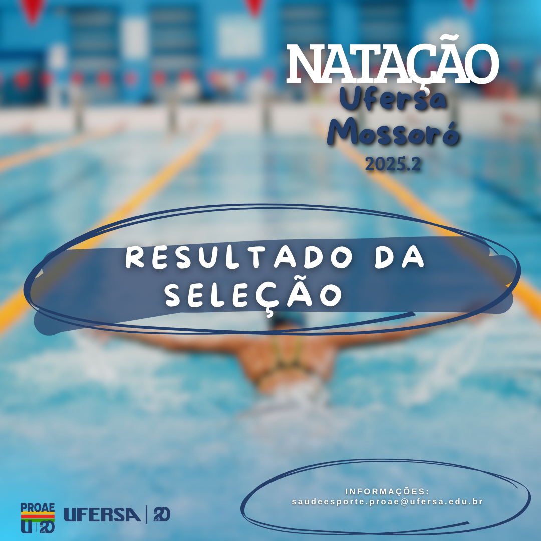 A Pró-Reitoria de Assuntos Estudantis, através de Divisão de Atenção à Saúde e Esporte, divulga o resultado da seleção para as turmas de natação para discentes, no semestre 2025.2. A efetivação da matrícula nas turmas se dará pelo comparecimento à aula no período de 29/11 a 02/10 de 2025, no horário da respectiva turma. O não comparecimento nestas datas acarretará na perda da vaga e convocação do suplente conforme a ordem da lista de espera.